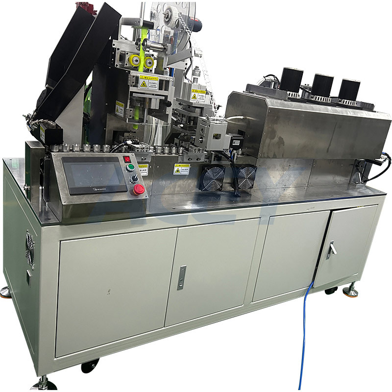 ACEY-ASM-1シュリンクスリーブアプリケーターは、全自動ボックス供給システムを採用しています。装置をリセットして起動すると、自動モードで連続運転します。間欠停止のたびに、空気圧クランプによってバッテリーが正確に位置決めされます。サーボ供給システムにより、熱収縮スリーブがバッテリーに自動的に装着されます。次のステーションでは、停止中に絶縁パッドが自動的にパンチングされ、スリーブに挿入されます。その後、セルは熱収縮オーブンを通過し、回転することで均一に収縮します。その後、専用のステーションでインクジェットマーキングが行われ、完成したバッテリーはバッファステーションに排出されます。バッファが満杯になると、バッテリーは自動的にトレイに押し込まれます。