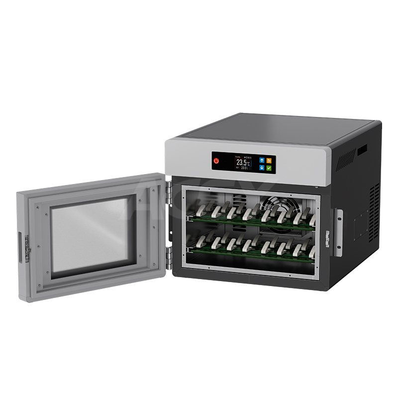 充放電試験装置と25Lの環境チャンバーを一体化したコンパクトな電池サイクルシステムで、一定温度条件下でのコインセルおよび小型パウチセル試験用に設計されています。各層には16個の独立したチャンネルが装備されており、チャンバーは2層に対応しているため、最大32個のコインセルを同時に試験できます。試験ポートは接続に便利なように左右の内壁に配置されており、システムはBTS上位コンピュータソフトウェアを介して制御され、1つのプラットフォーム内で統一された操作、温度制御、データ管理が可能です。