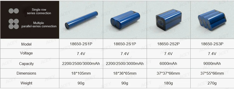 3.7V の個別電池は、必要に応じて 3.7*(N)V (N: 個別電池の数) の電圧の電池パックに組み立てることができます。